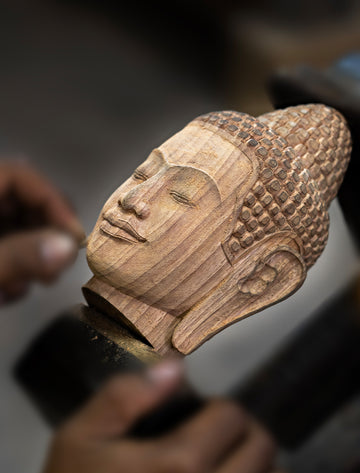 Das Holz ist sehr gut verarbeitet. Die Handarbeit ist sauber, die Proportionen stimmen und der Gesichtsausdruck hat Tiefe. Man sieht, dass die Schnitzer in Indonesien jahrelange Erfahrung haben.