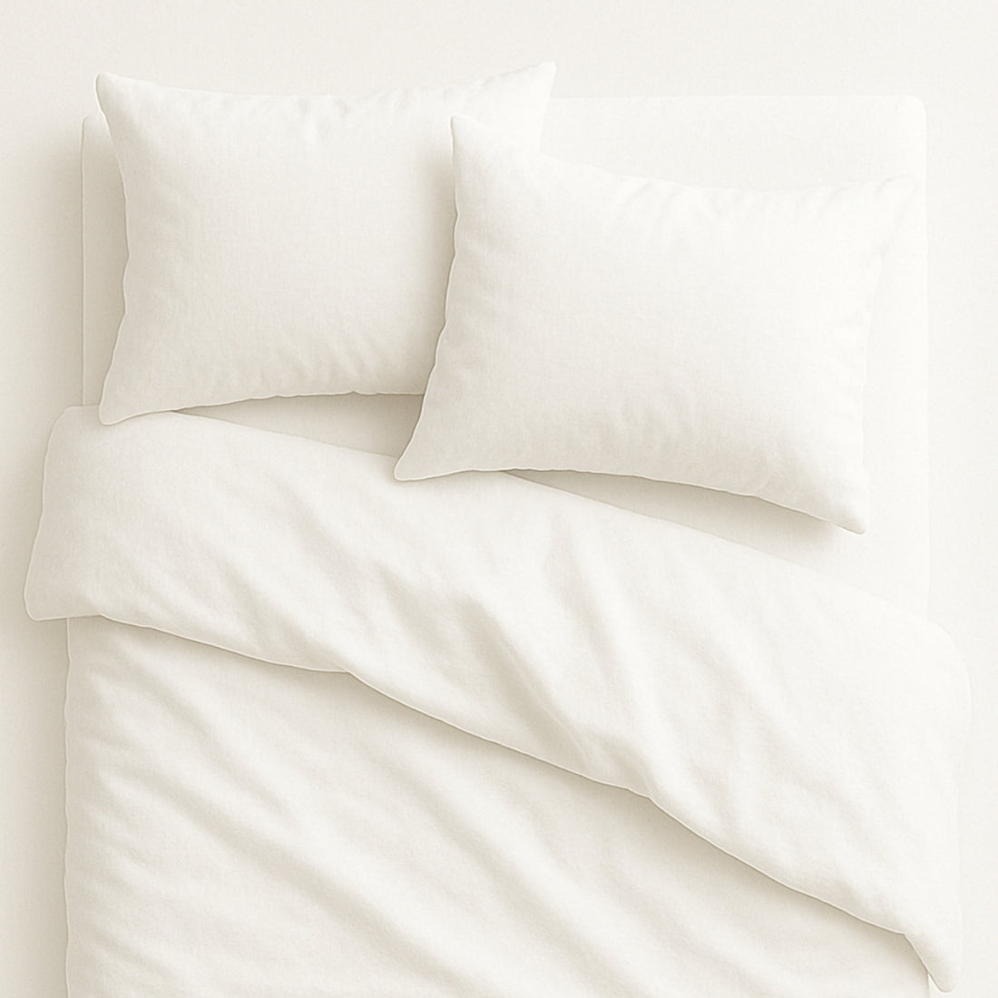 Essentials that foster restful sleep and visual calm. Formed from refined fabrics and crafted with care, each piece supports repose while complementing the atmosphere of the room.
