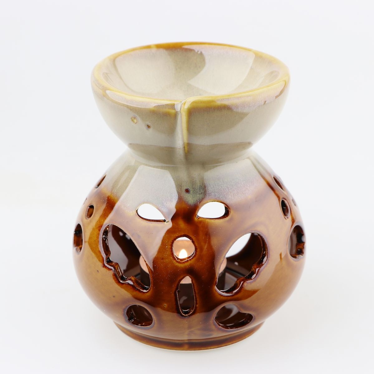 Die Aromalampe für Teelichter nutzt die Wärme von Teelichtern, um Duft in den Raum zu verbreiten. Sie erzeugt einen angenehmen Duft und fördert die Entspannung. Sie besteht aus einer oberen Schale, in die Sie Wasser gemischt mit einigen Tropfen ätherischem Öl gießen oder Wachs platzieren und im unteren Teil ein Teelicht anbringen. Das Anzünden des Teelichts erhitzt das Öl und damit auch die Verdampfung und Freisetzung des Duftes in den Innenraum.
