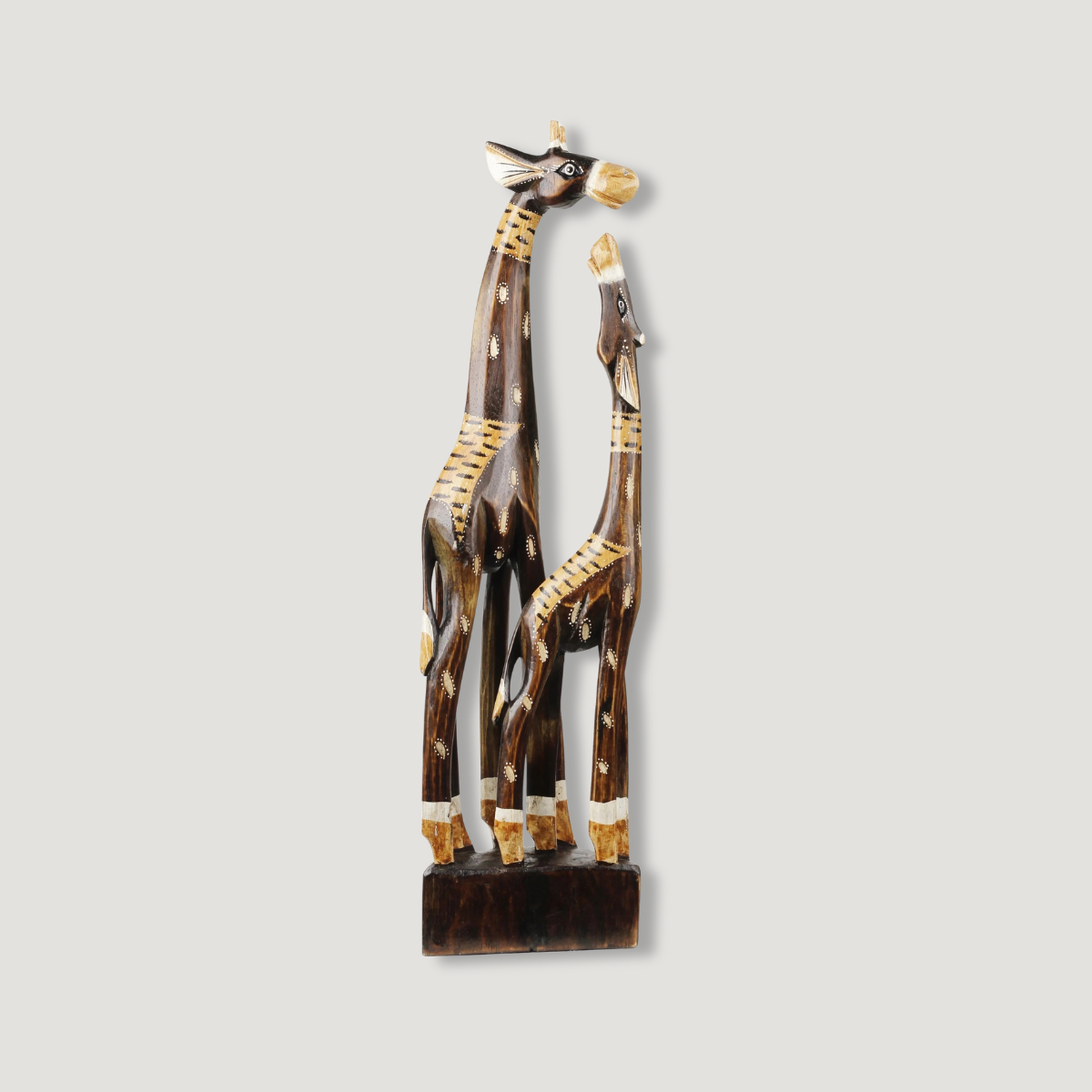 Detailreich ausgearbeitete Dekoration aus Palmenholz, die tierische Liebe darstellt, bringt Harmonie in Ihr Zuhause. Die Figur, die direkt in Indonesien hergestellt wurde, wird jeden Raum bereichern und kann auch ein originelles Geschenk sein, mit dem Sie sicherlich Erfolg haben werden.