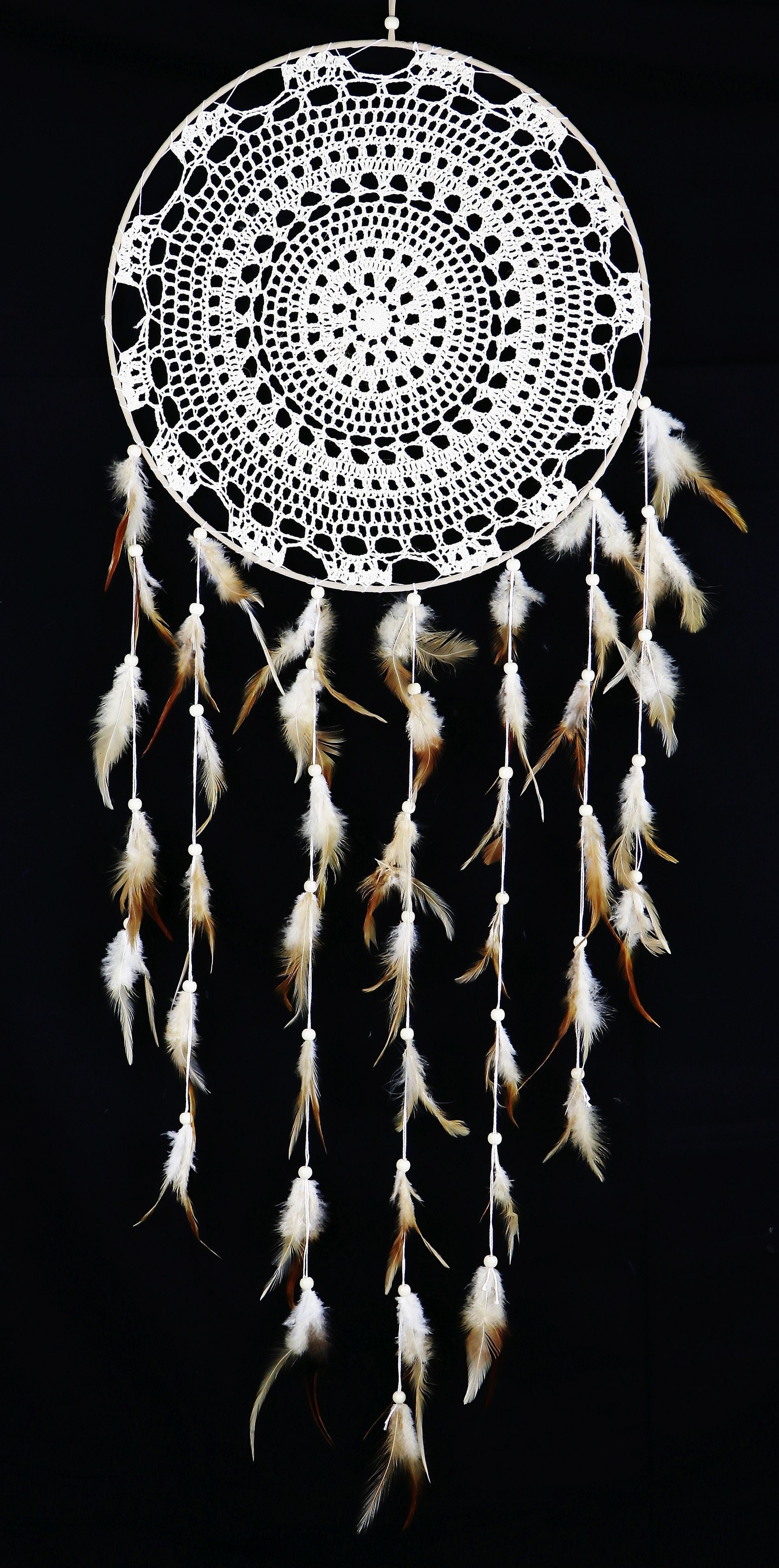Traumfänger sind eine sehr alte indianische Tradition. Die ursprünglichen Traumfänger stammen vom nordamerikanischen Stamm der Ojibwe. Eine alte Geschichte erzählt, dass Traumfänger zunächst nur über die Wiegen kleiner Kinder gehängt wurden. Laut der Legende der Ojibwe kümmerte sich eine Spinnenfrau namens Asibikaashi um alle Kinder in der Umgebung, aber der Stamm wuchs allmählich, und es wurde für sie immer schwieriger, alle Kinder zu schützen. Deshalb erhielt sie Hilfe von Müttern und Großmüttern, die begannen, diese Traumfänger herzustellen. Ein traditioneller Traumfänger ist handgefertigt aus einem Holzreifen, an dem ein Netz aus natürlichen Fasern gewoben ist. Der Reifen ist normalerweise mit Federn und Perlen geschmückt. Die Einhaltung der Tradition ist uns sehr wichtig, und deshalb stellen wir Traumfänger von Hand aus ökologischen Materialien her.