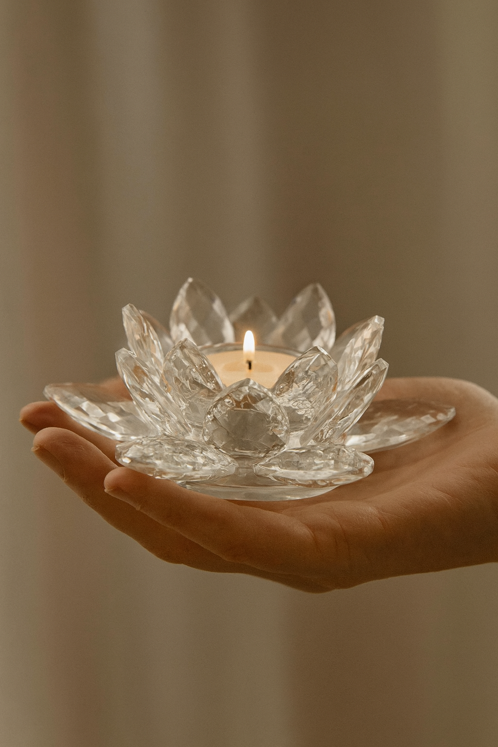 Crystal candlestick in the shape of a lotus. The gentle flickering of candlelight through the crystal petals creates a sense of peace and harmony, ideal for relaxing after a busy day.